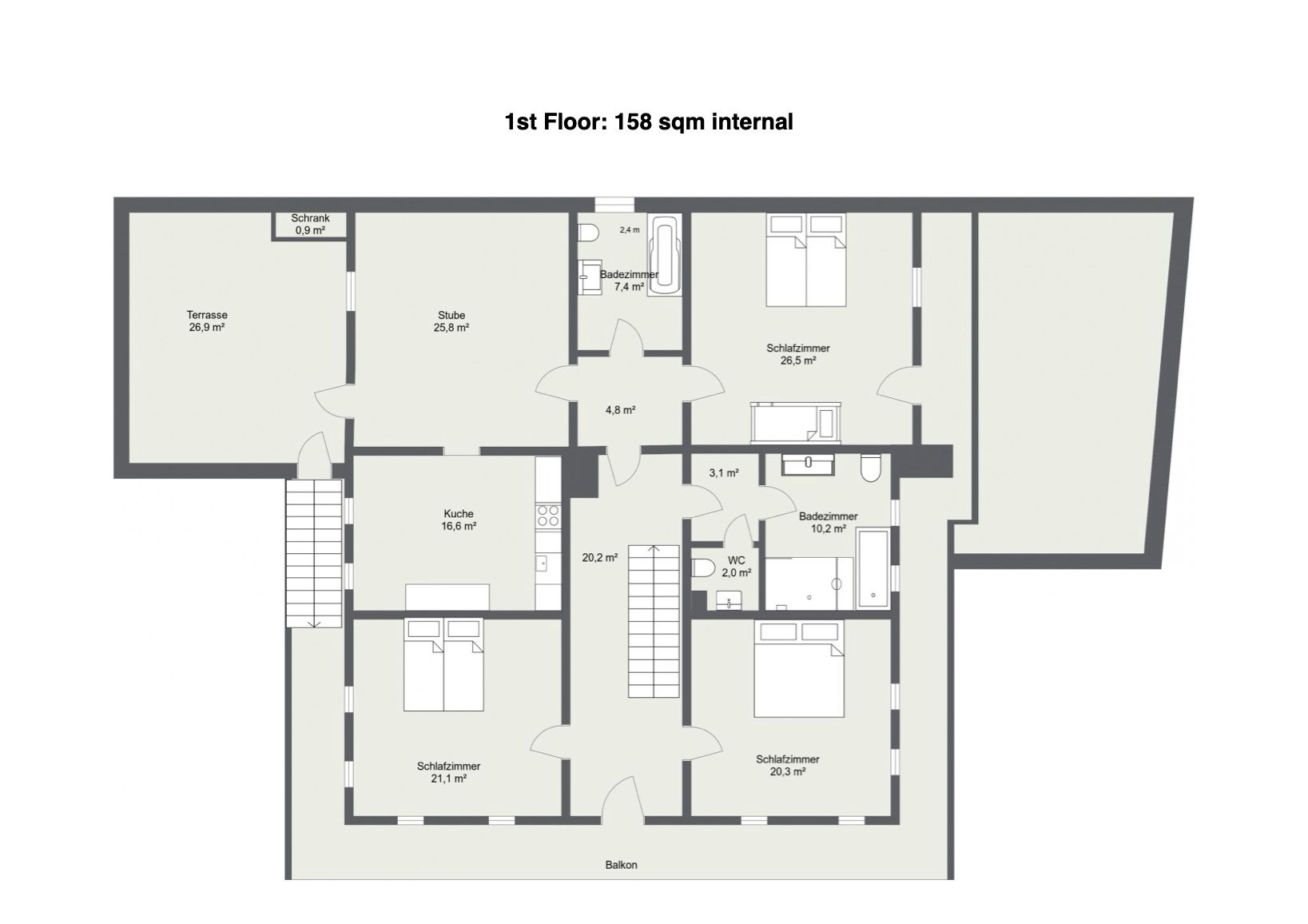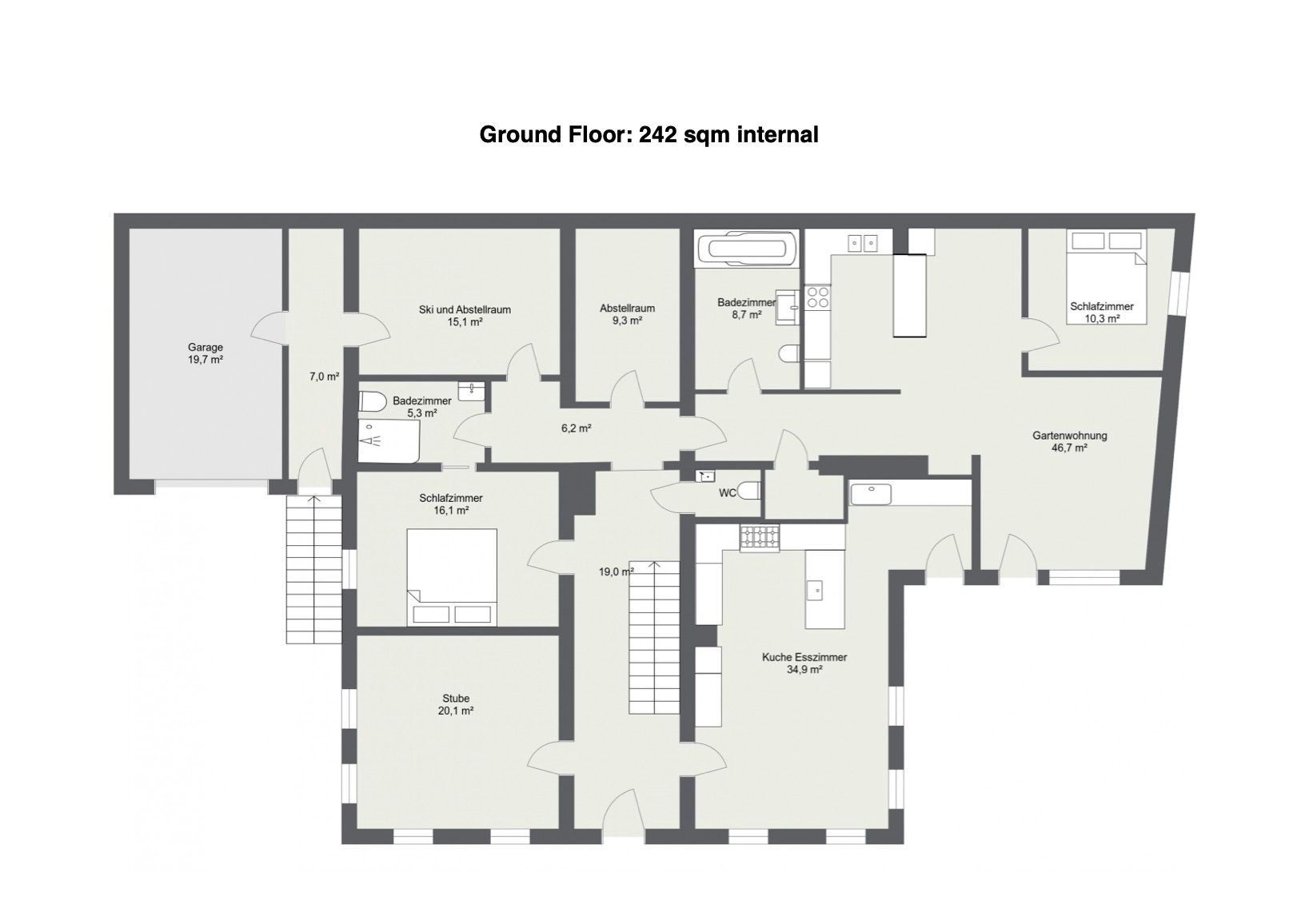 Dorf30 is currently arranged into three separate (yet interconnected) apartments and has been a very successful vacation rental property, appealing to larger family groups in particular.